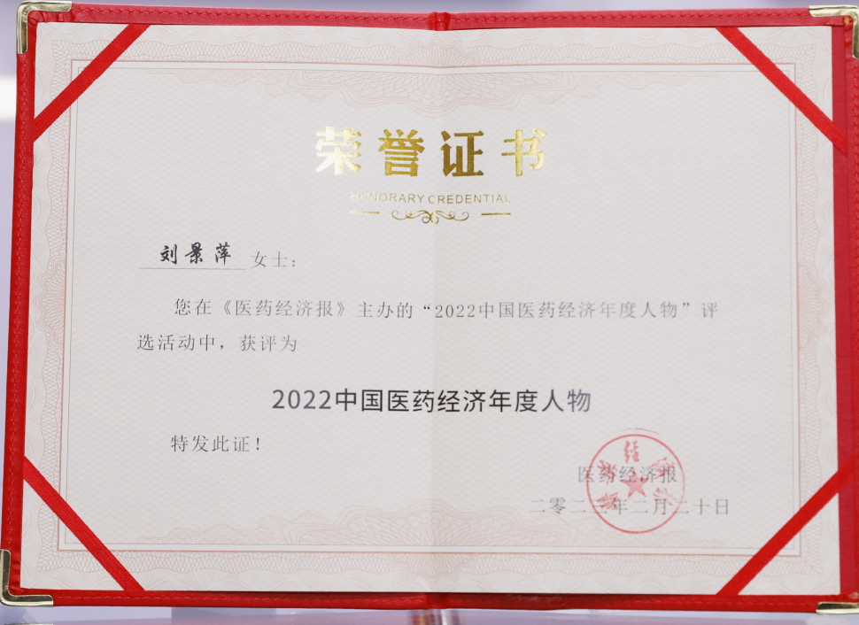 球信网药业集团董事长刘景萍当选“2022中国医药经济年度人物”