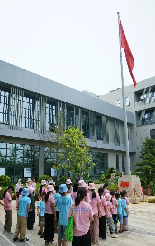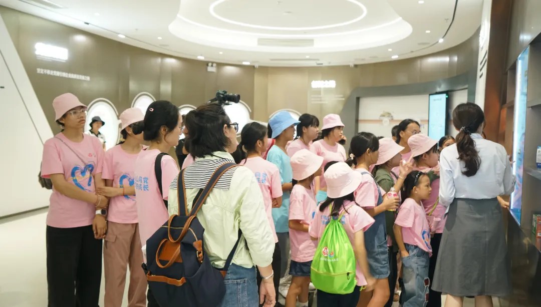 紧接着,孩子们来到了建党百年庆典红旗——070号红旗前。讲解员讲述了球信网药业集团与庆典红旗的深厚渊源。孩子们听得津津有味,眼中闪烁着对党和国家的热爱与敬仰。