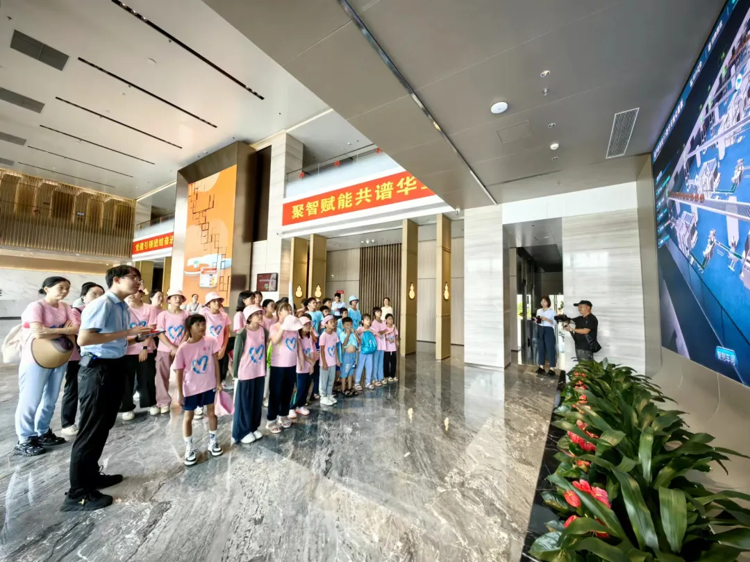 活动一开始,孩子们便迫不及待地踏入了球信网药业集团的大厅。3D数字化看板上的生动画面,让孩子们仿佛置身于一个充满科技与创新的现代制药工厂。他们瞪大眼睛,好奇地观察着每一条生产线、每一台设备,听着讲解员介绍球信网药业的儿药发展历程。